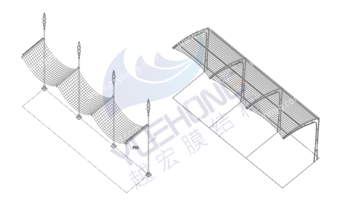 廣州膜結(jié)構(gòu)車棚是以新穎獨特的建筑造型,來打造有良好的車棚空間結(jié)構(gòu),為人們提供了車輛停放的合理區(qū)域。不僅是為人們解決了車輛停放的方便之處,還具有了獨特優(yōu)勢:一般使用壽命在15-30年,具有具有高透光率,透光率為13%,對熱能反射率73%,熱吸收量很少等等。