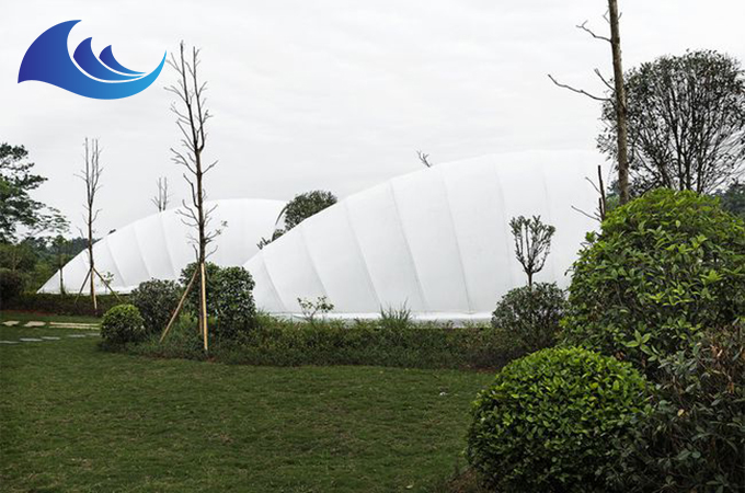 帳篷酒店采用高強度中空鋁合金結構或者是鋼結構,表面具備有防腐處理,優選膜結構頂棚,安全耐用,防水、阻燃、防紫外線。